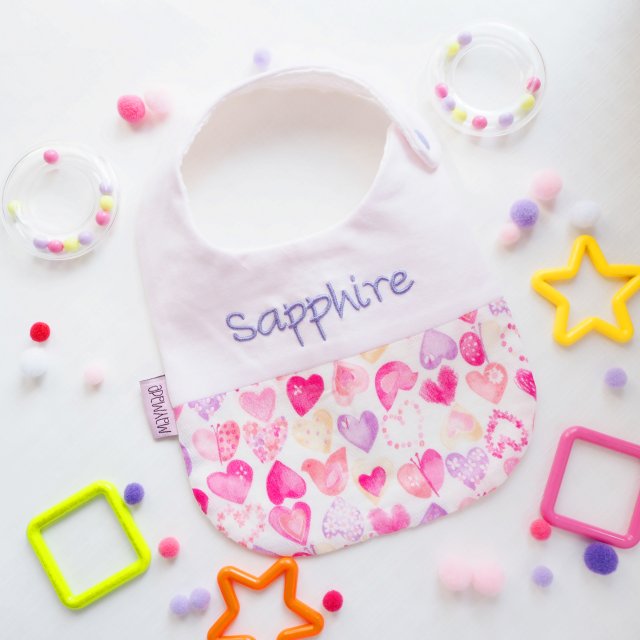 愛心圖案 拼布款繡名口水肩
