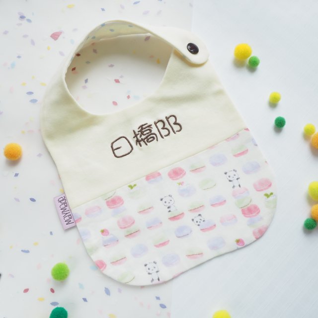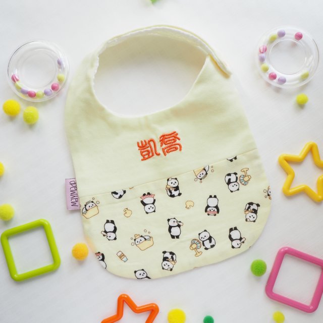 馬卡龍熊貓圖案 拼布款繡名口水肩