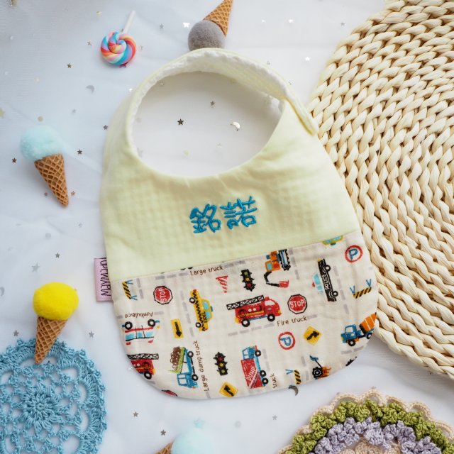 自選二重紗/純棉圖案 拼布款繡名口水肩