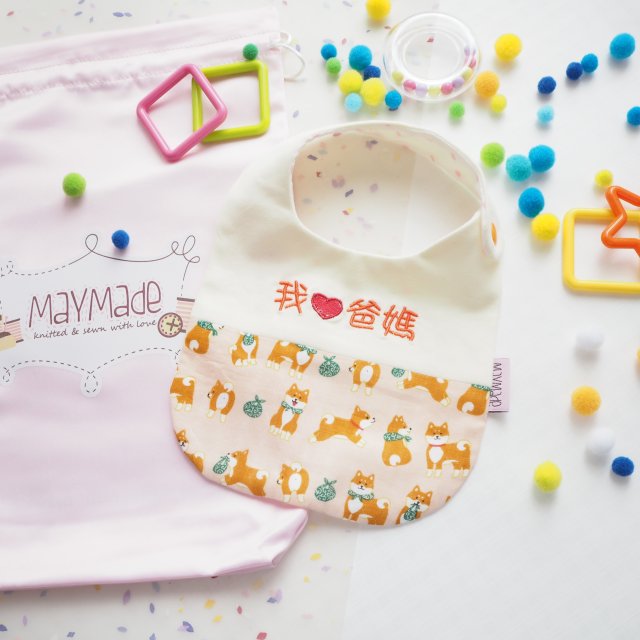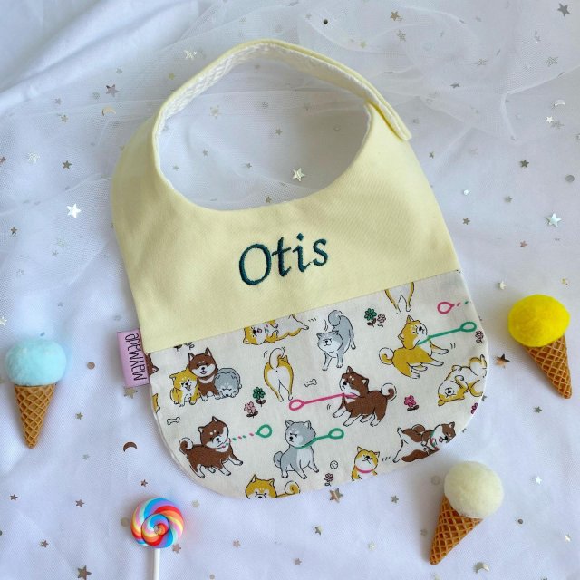 橙色柴犬純棉布圖案 拼布款繡名口水肩