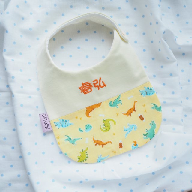 恐龍二重紗圖案 拼布款繡名口水肩 (限量)