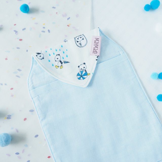 藍色雨中熊貓圖案汗巾