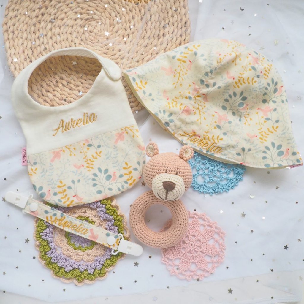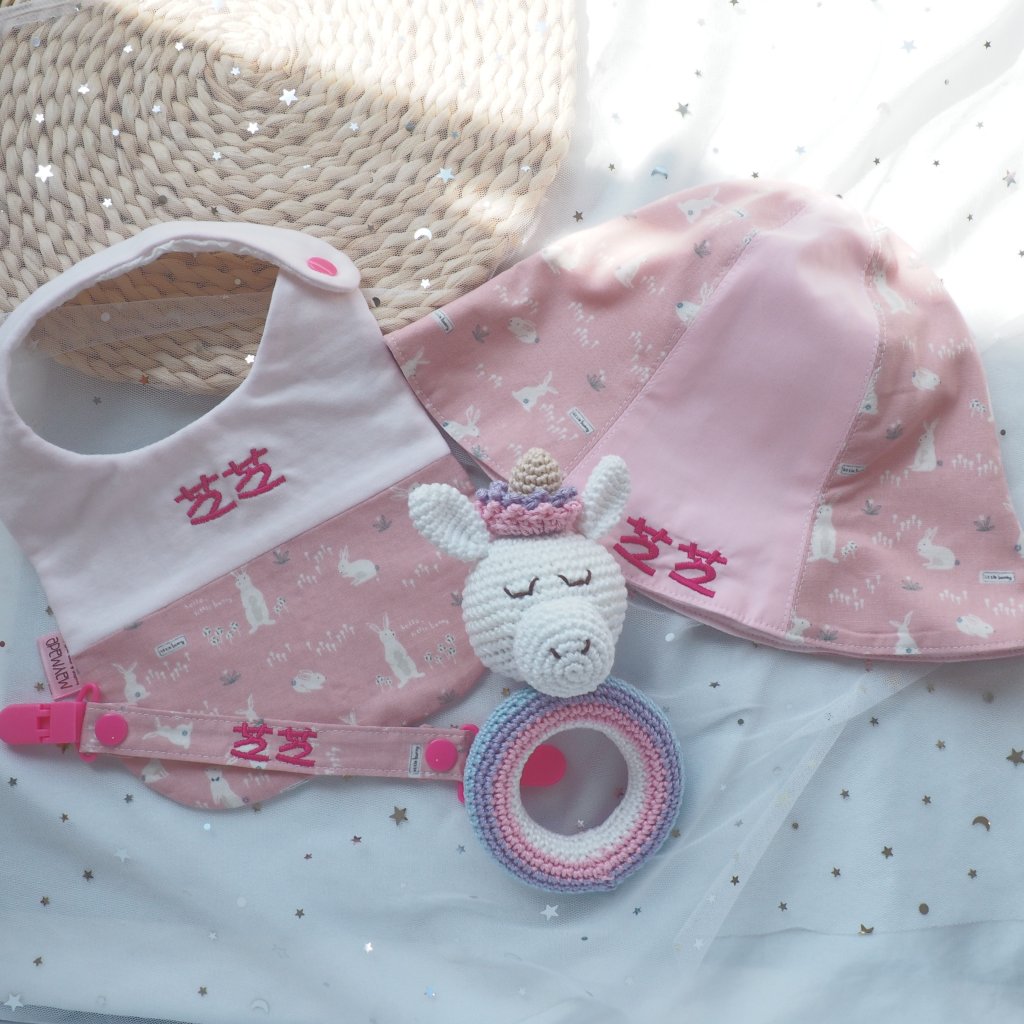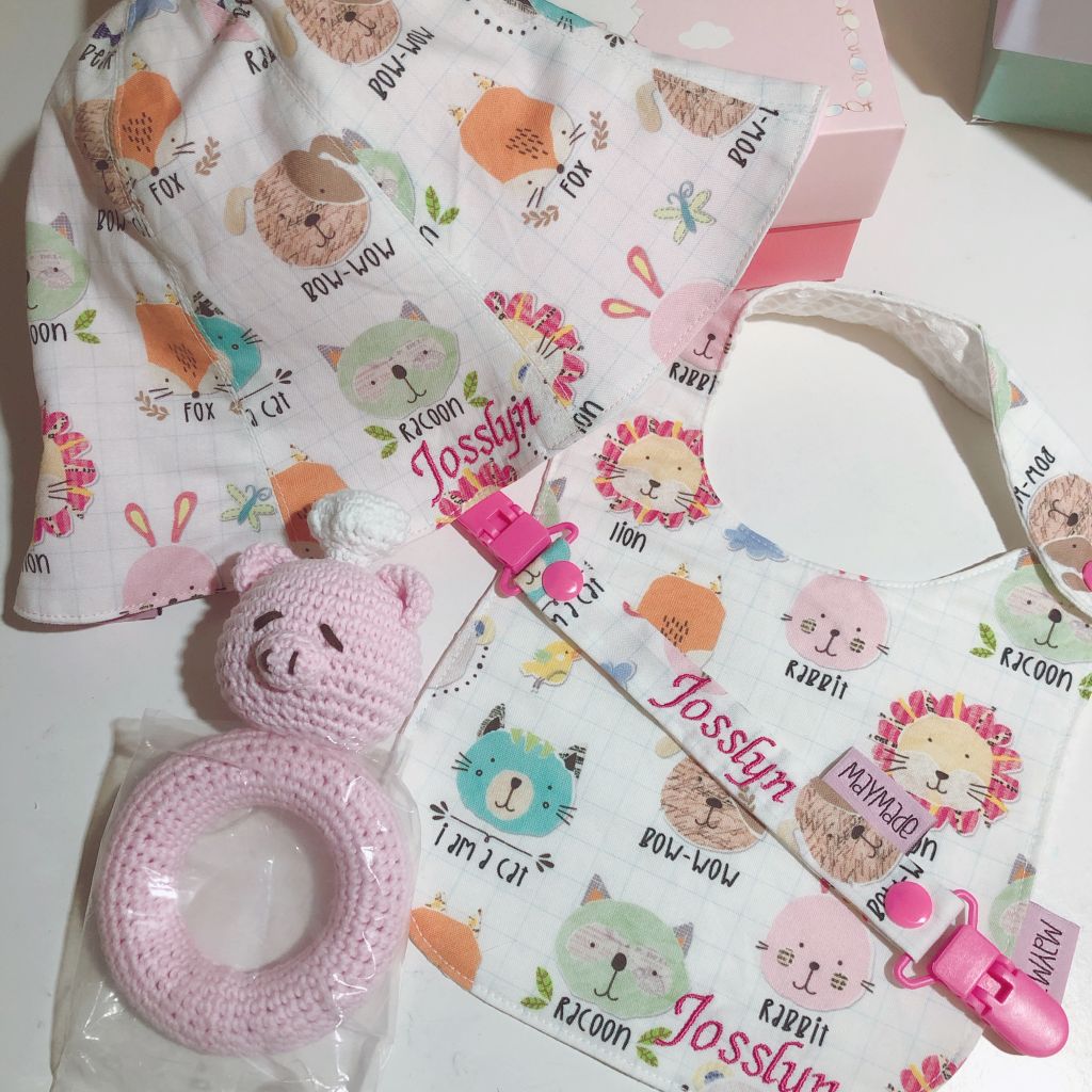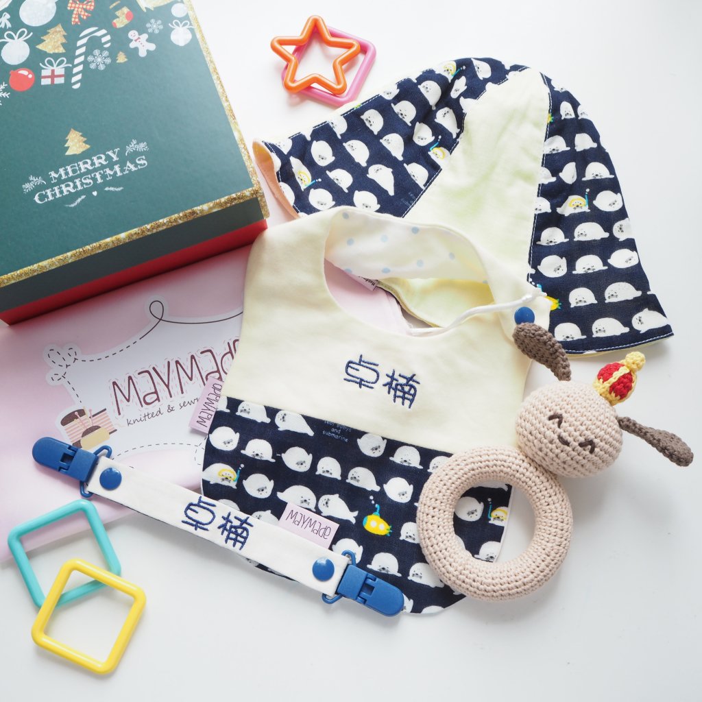 可繡名字漁夫帽 一頂 (可選拼布款或全圖案款,如選二重紗布款不可繡字在漁夫帽上)