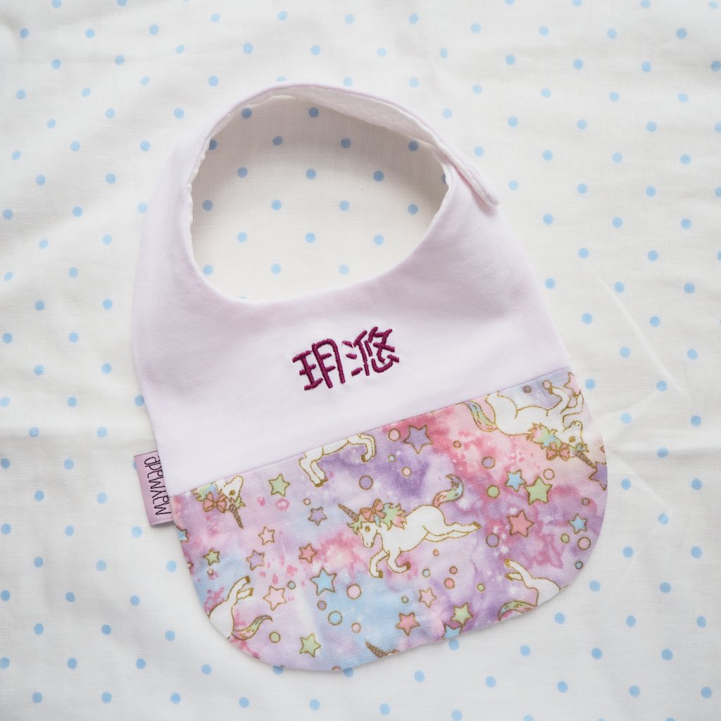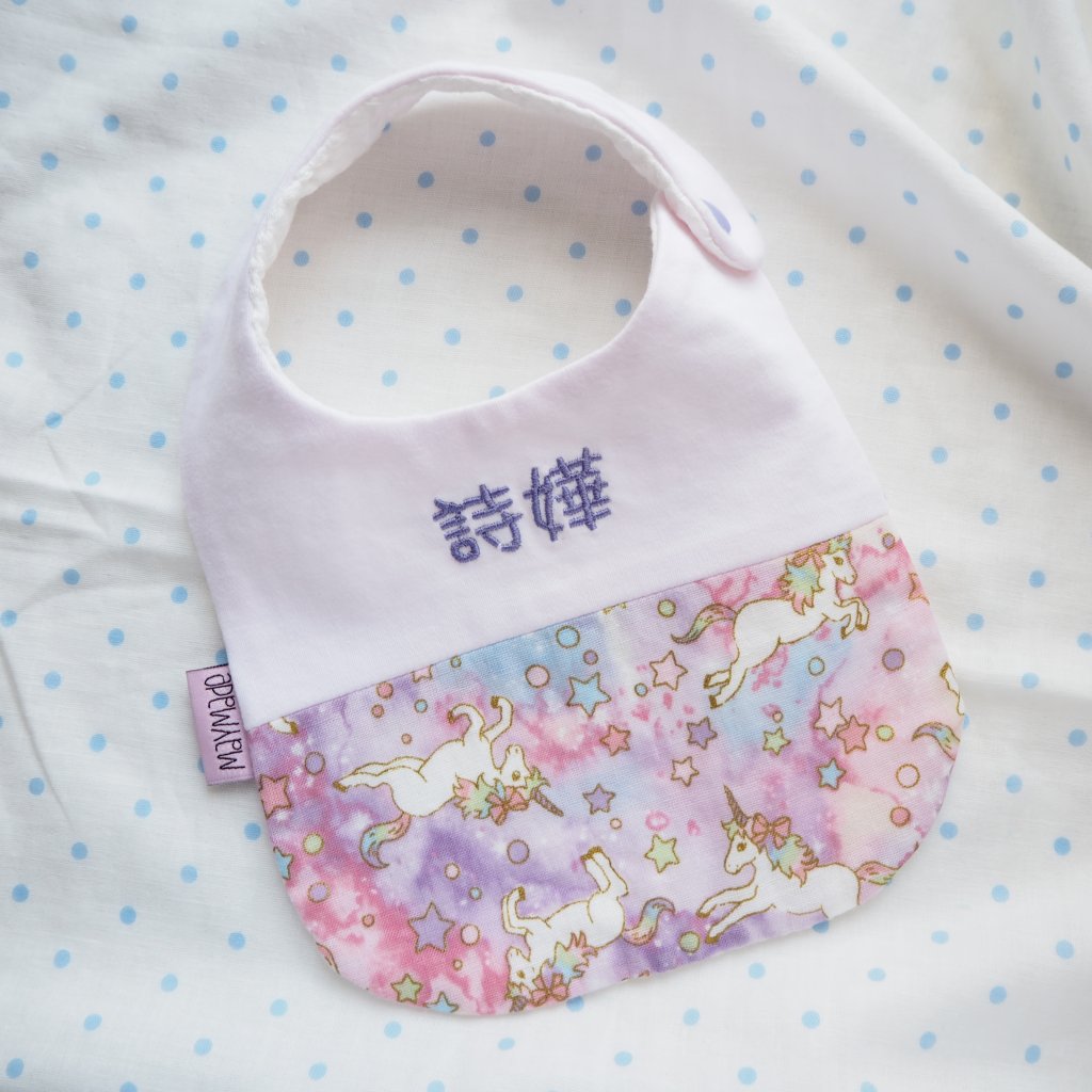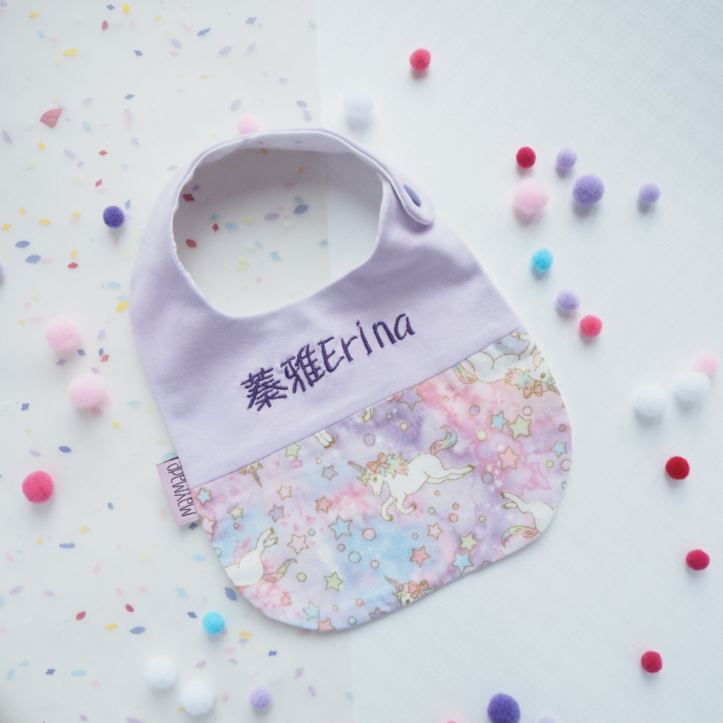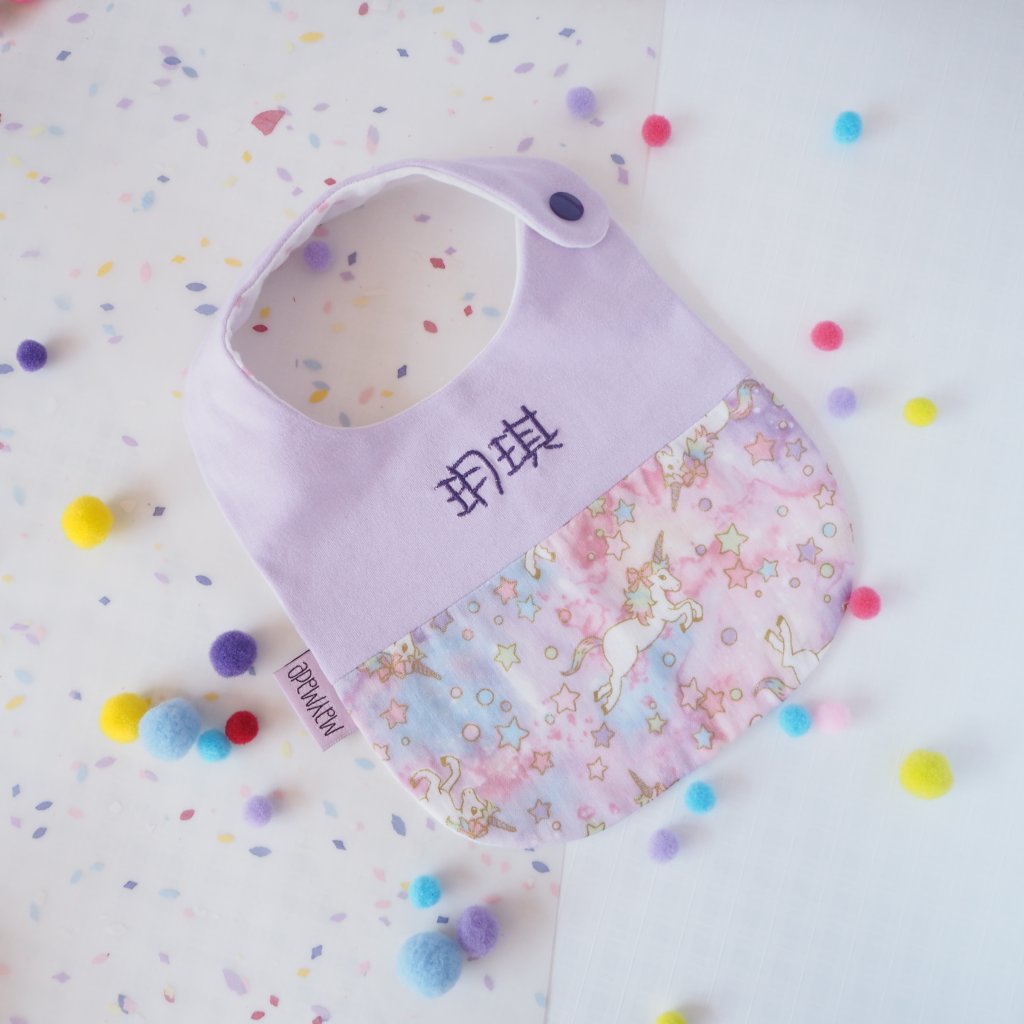 紫色獨角獸圖案 拼布款繡名口水肩