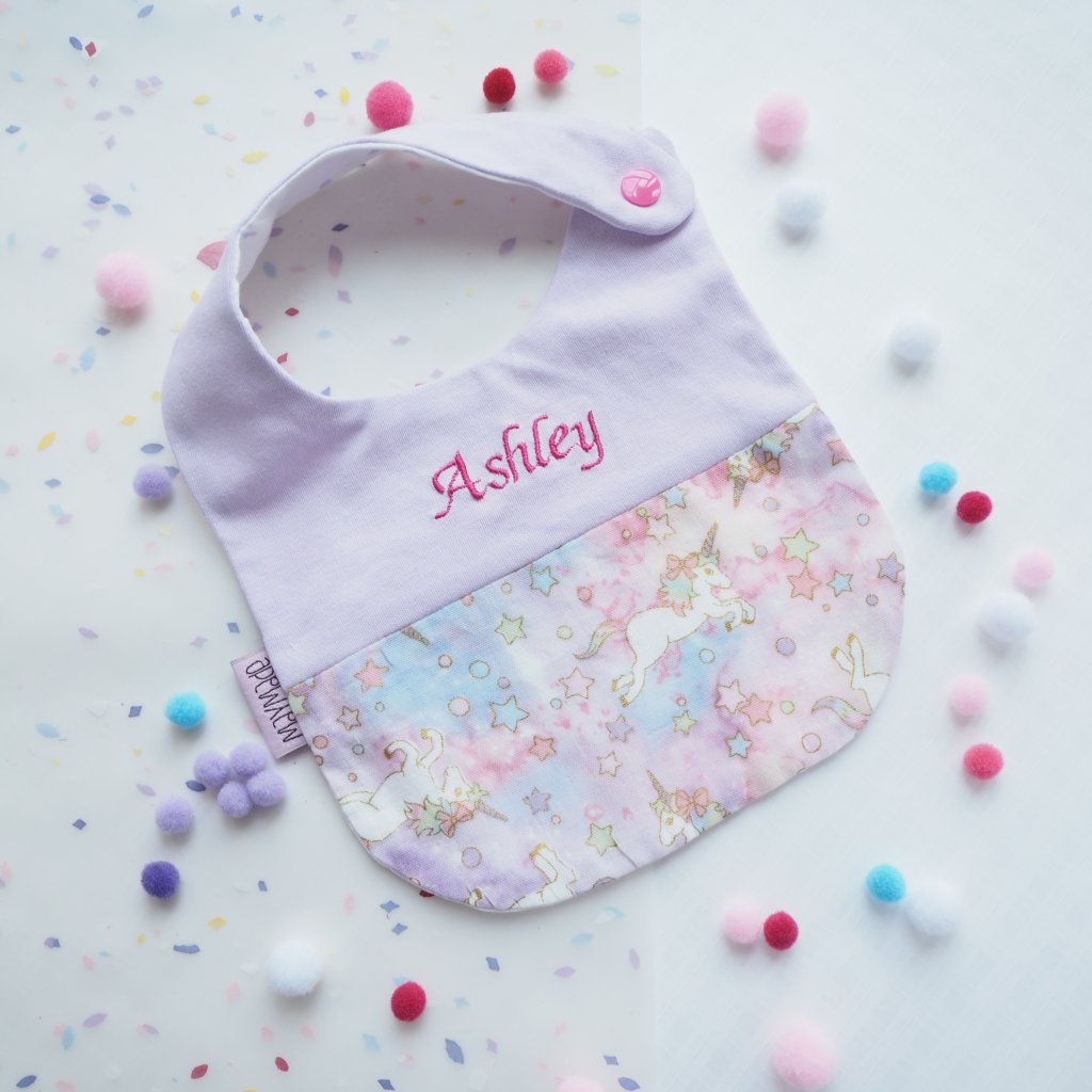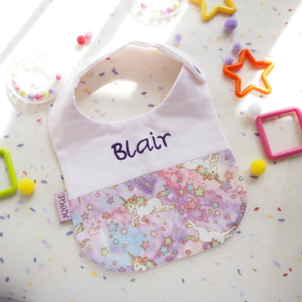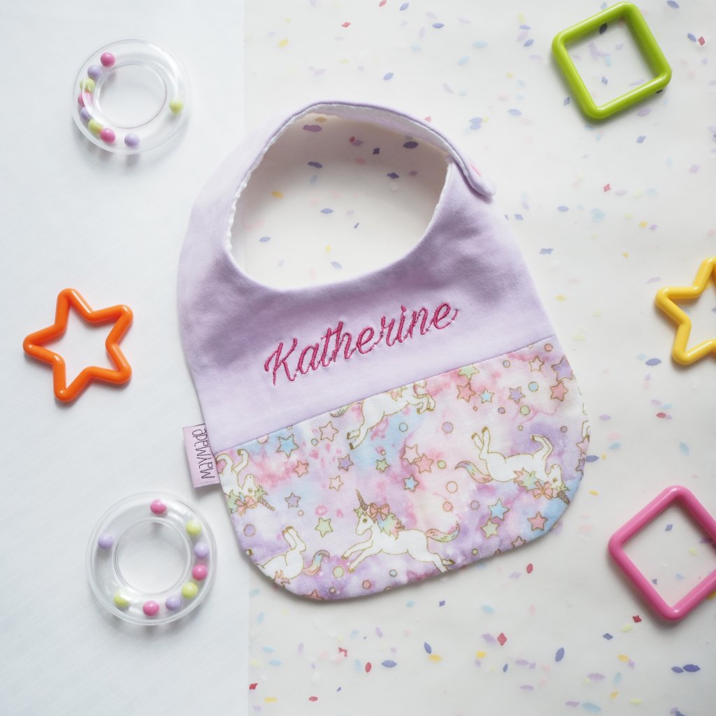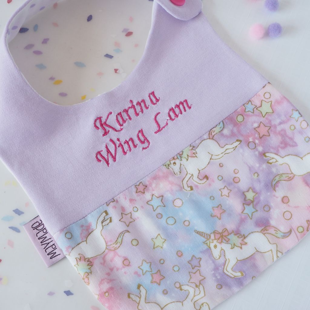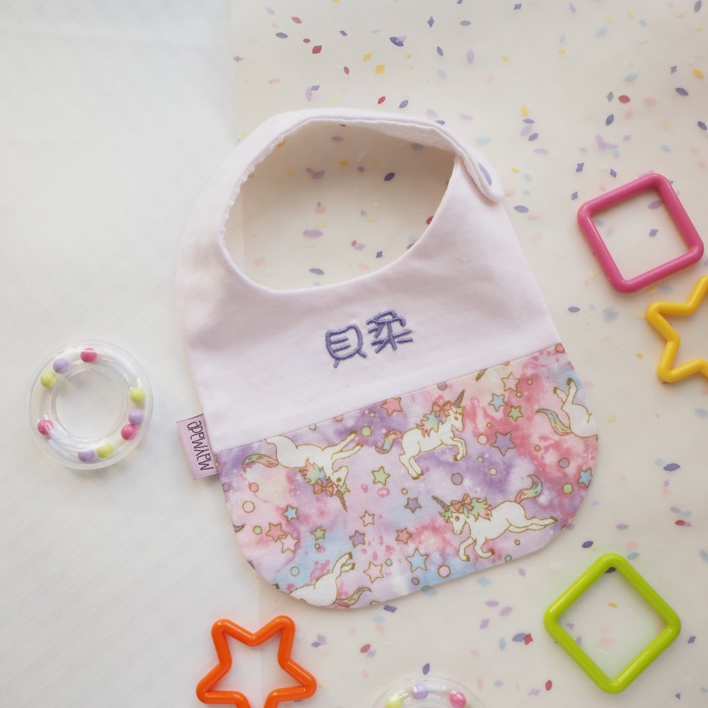 紫色獨角獸圖案 拼布款繡名口水肩