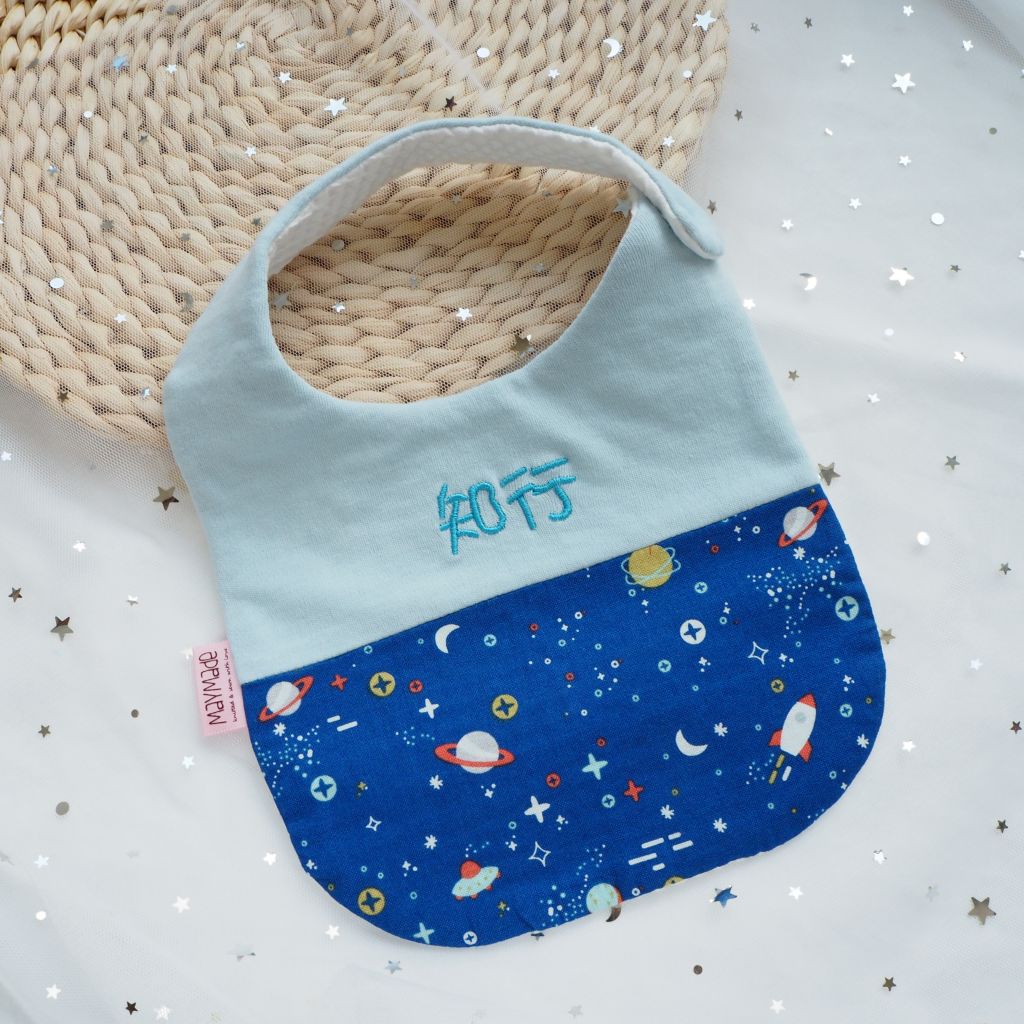 太空純棉布圖案 拼布款繡名口水肩