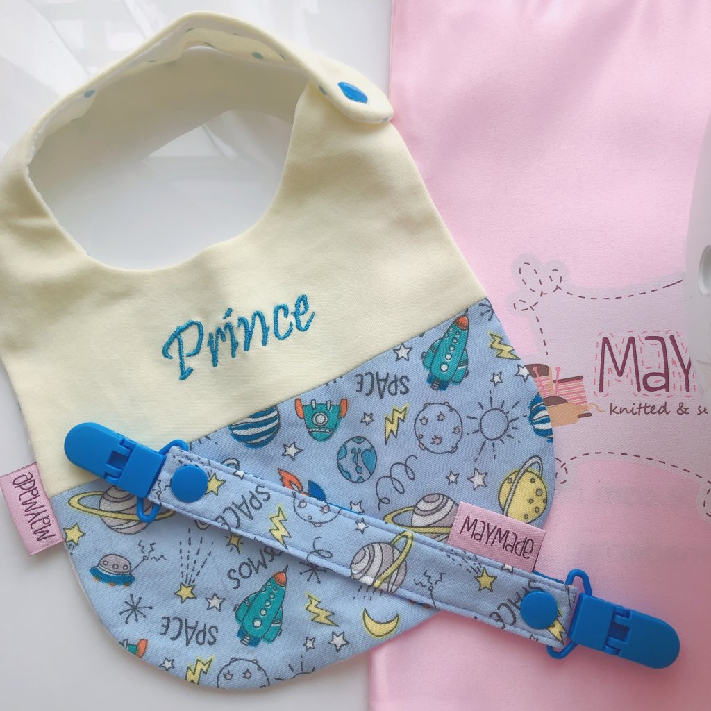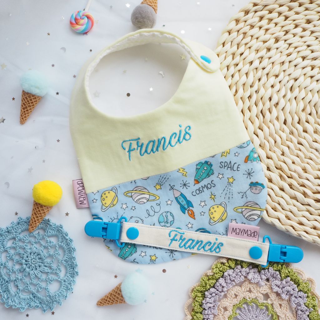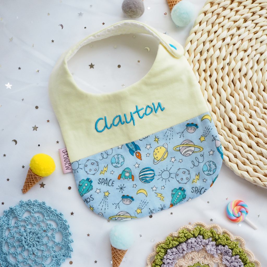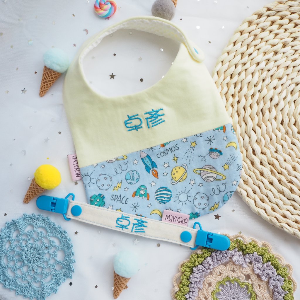 宇宙圖案 拼布款繡名口水肩(Sold Out)