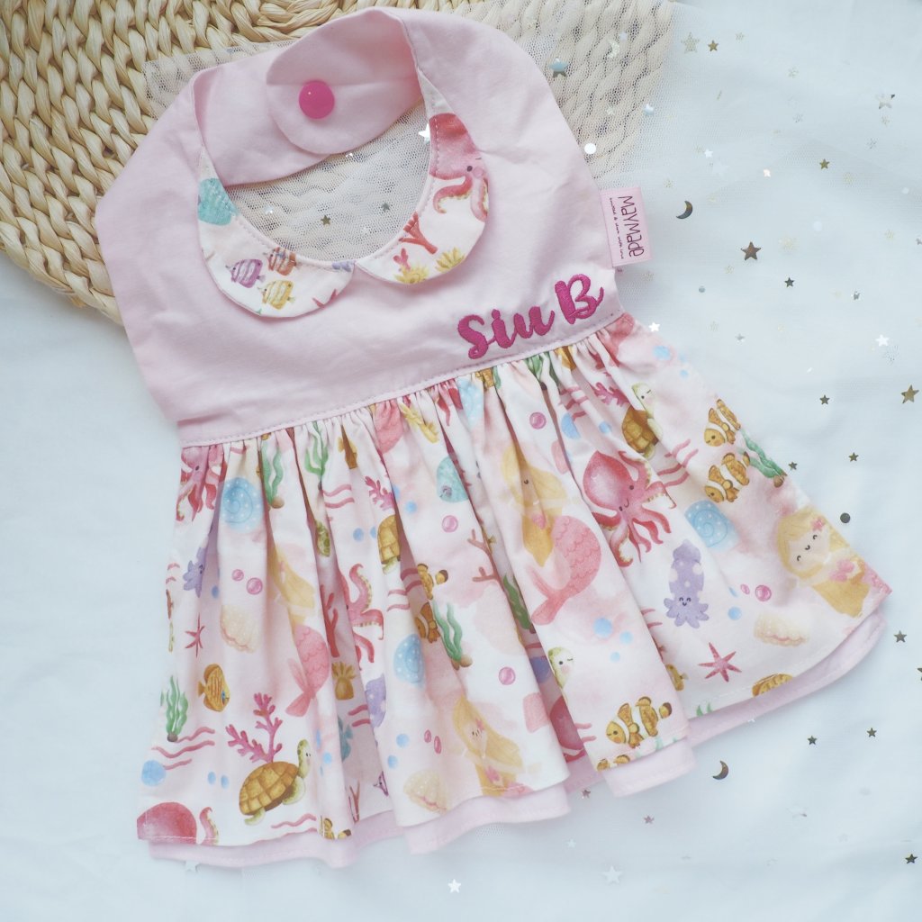 粉紅色美人魚圖案 迷你裙造型口水肩 彌月禮物