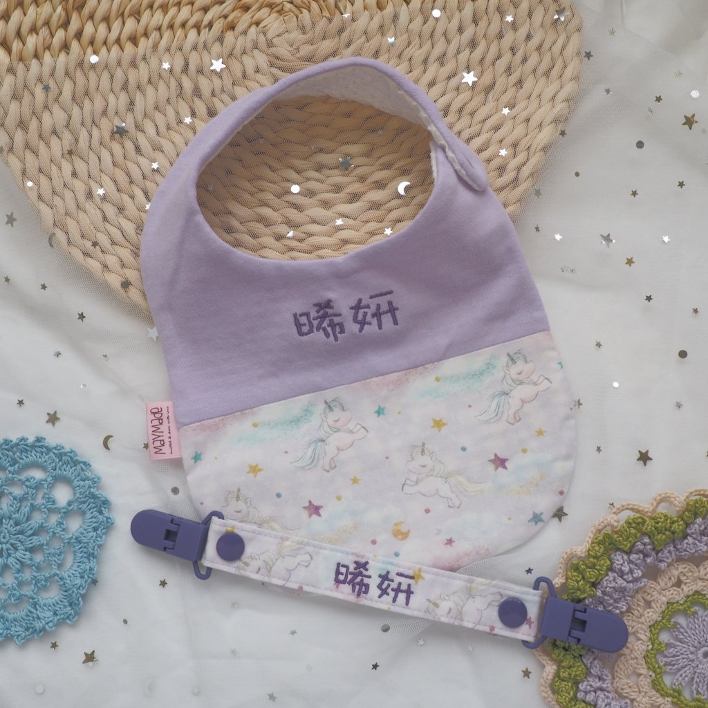 獨角獸純棉布圖案 拼布款繡名口水肩
