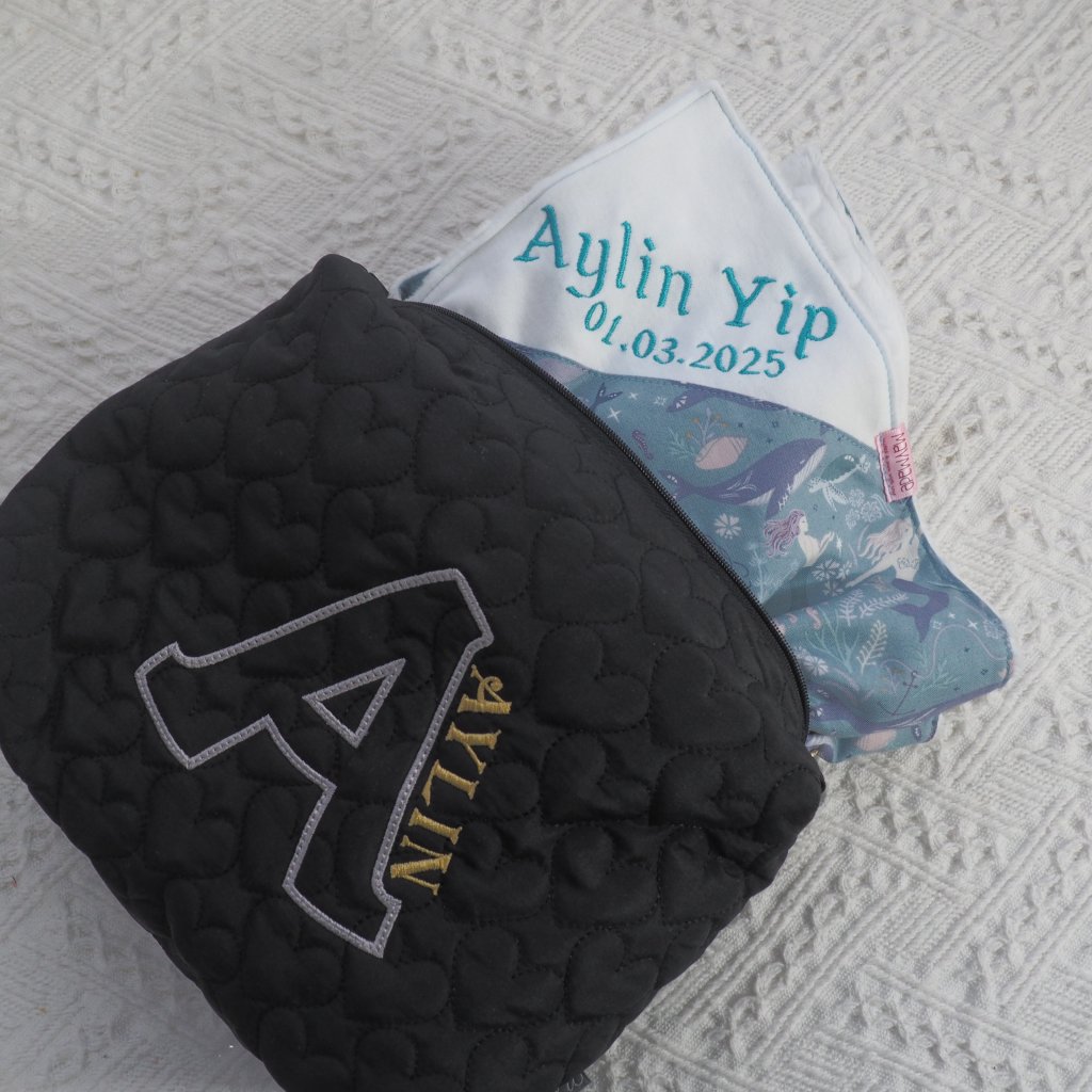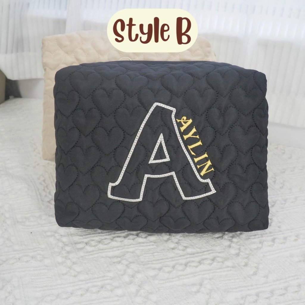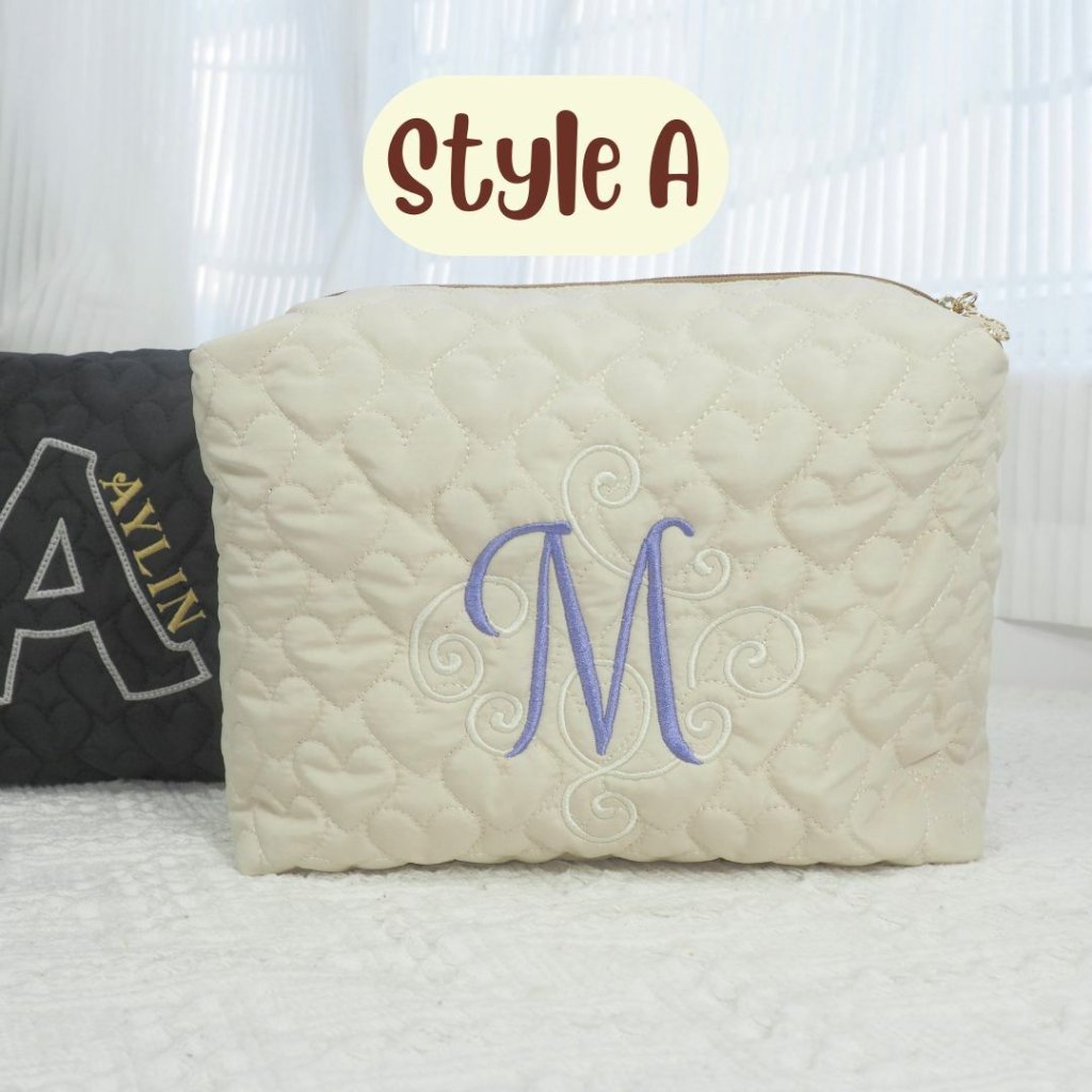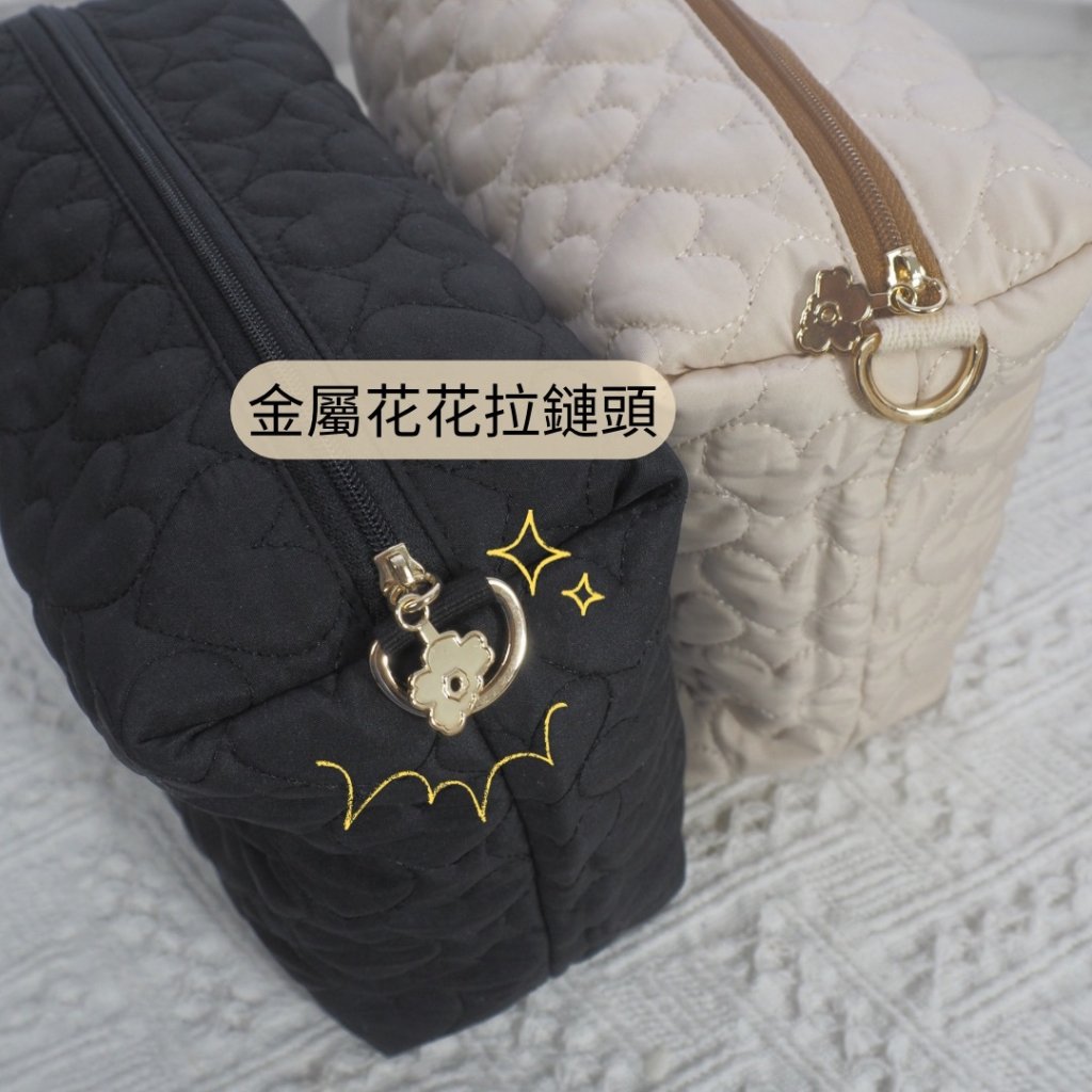 心心夾棉刺繡字母拉鏈袋