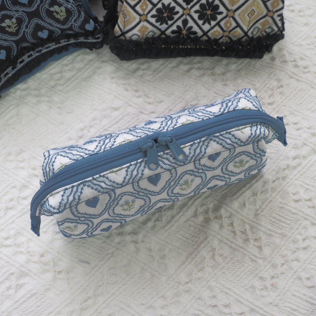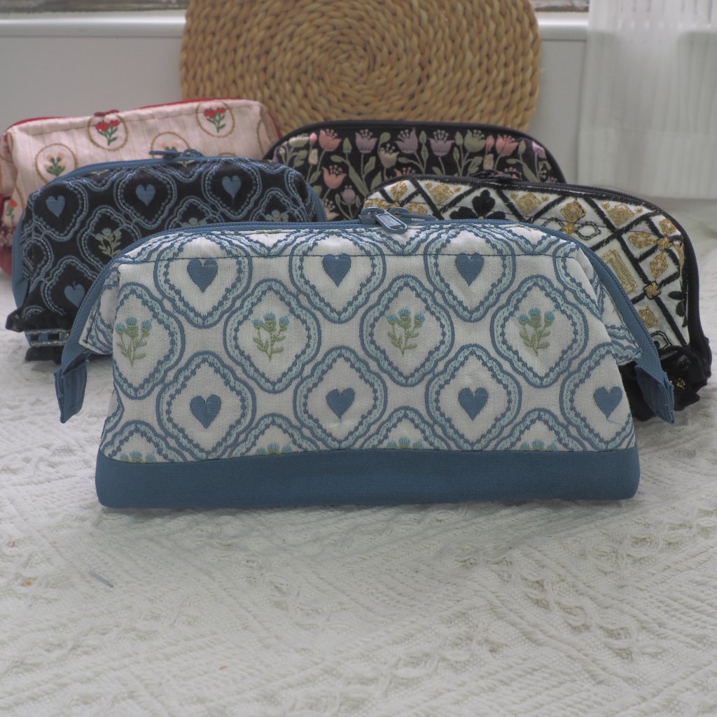 白底心形圖案 印度刺繡帶 醫生口金袋 支架口金 (中)