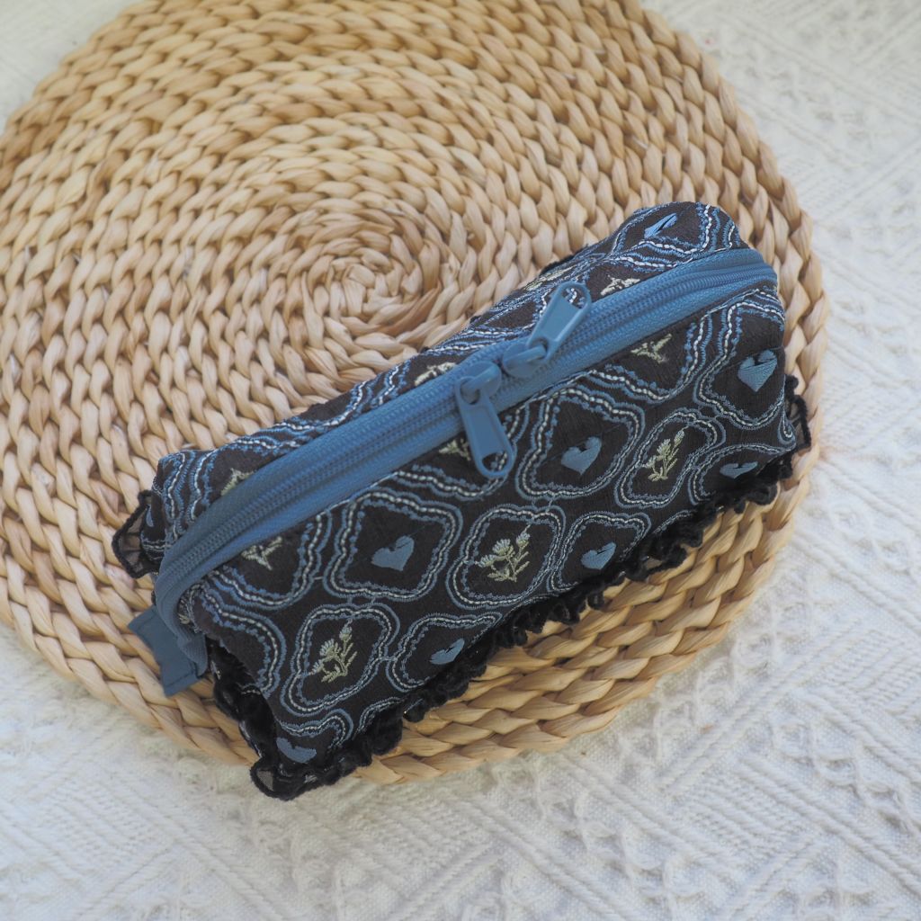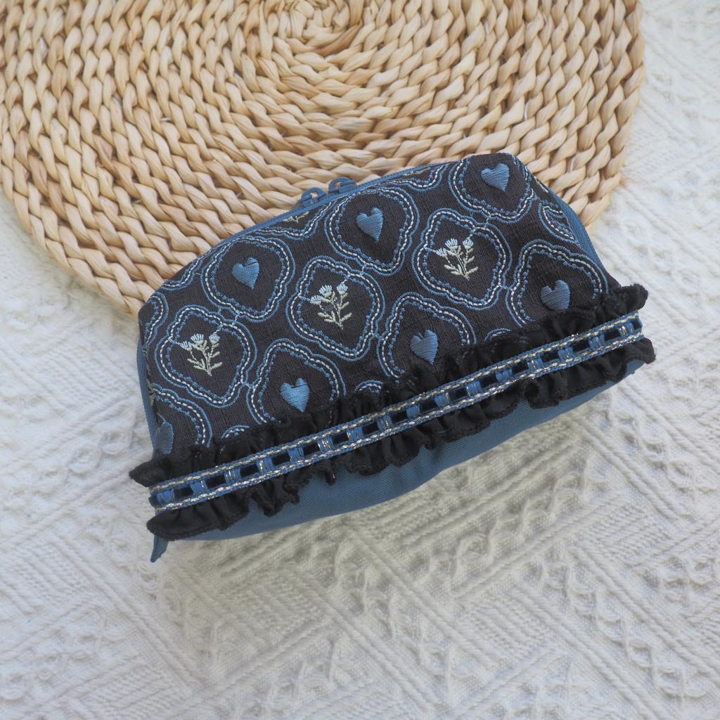黑底心形圖案 印度刺繡帶 醫生口金袋 支架口金 (小)