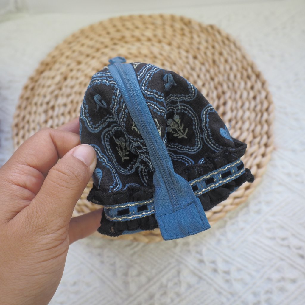 使用日本進口之印度刺繡帶及日本純棉布製作。現貨只有一個,售完不補。