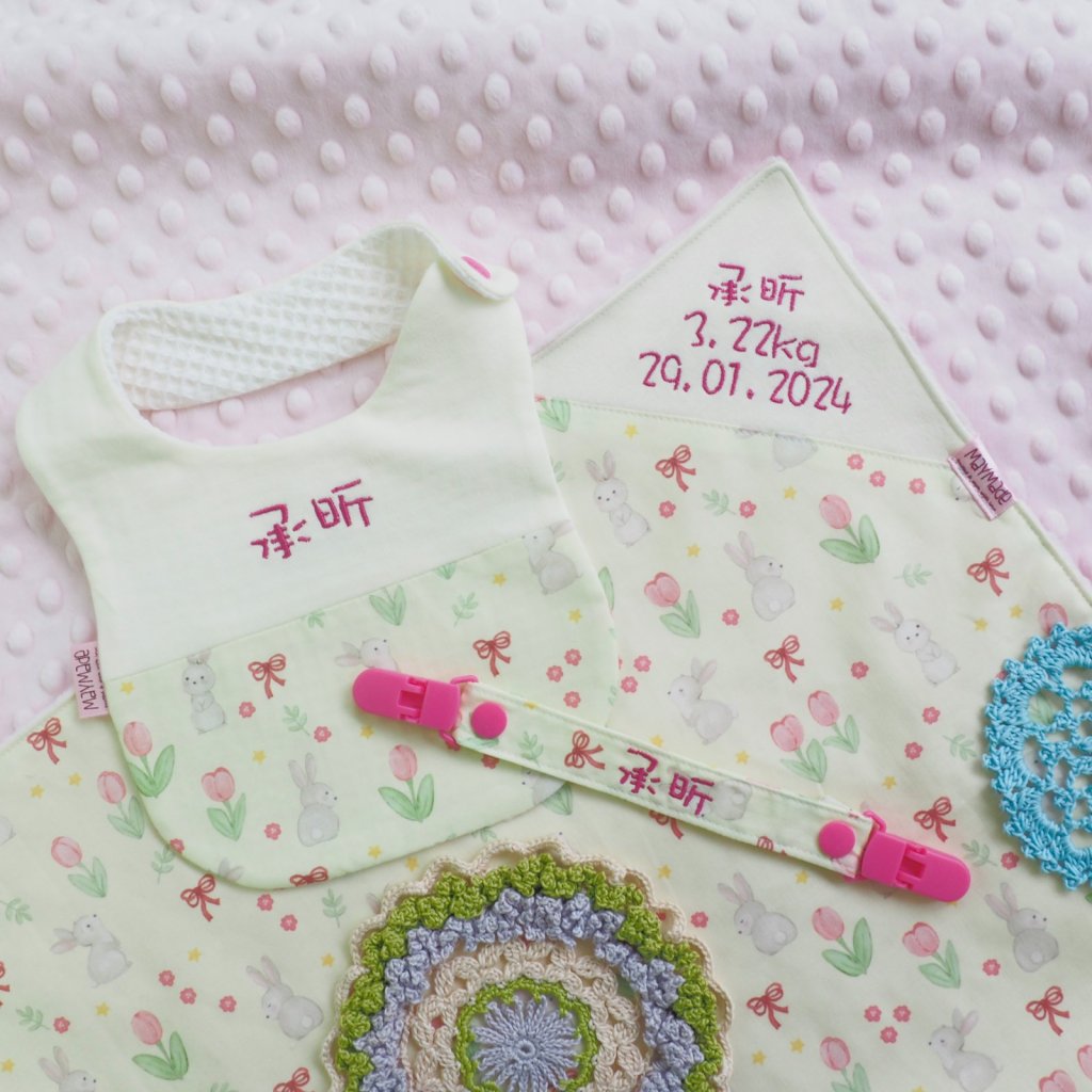 黃色鬱金香兔兔圖案 BB被仔 嬰兒被 可繡名